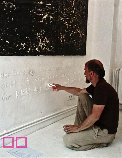Christof Klemmt schreibt mit Zahnpasta an die Wand in der galerie-in-kiel.jpg